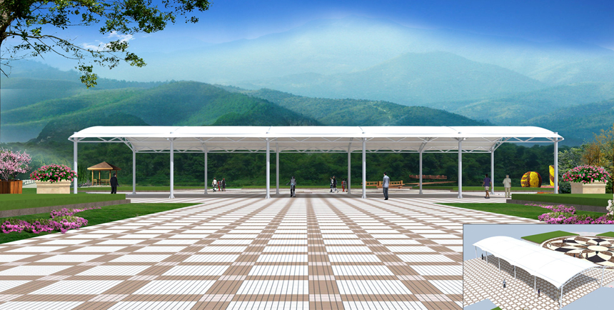 工程結(jié)構(gòu):骨架式膜結(jié)構(gòu)雨棚;